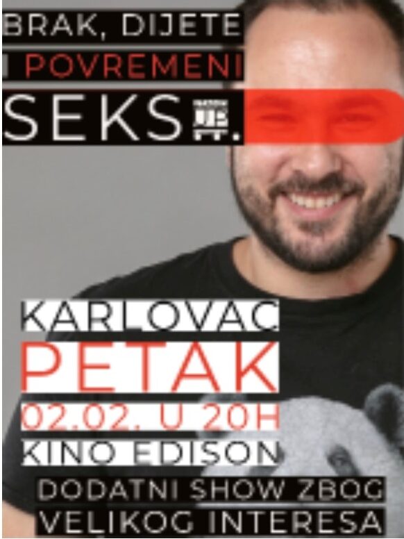 PETAK, 2. 2. 2024., u 20:00 sati Brak, dijete i povremeni seks – Marko Dejanović stand up Zbog velikog interesa...